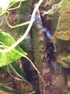 The poet in me wants to wax eloquent about the cold, evil gaze of a born predator, but you know, it’s a snake. I’ve become very cranky about people applying moral judgments to the natural behavior of animals. Being a predator of the animal world does not equate to being a psychopathic monster of the human variety. Sharks are not Ted Bundy. Snakes are not out to get people (seriously, Dad, they’re NOT!). They’re usually more scared of (and hurt by) us than we are of (and by) them.