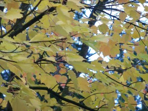 Yesterday morning was sunny–actually, all week was sunny until late morning yesterday–and the light was gorgeous on the leaves.