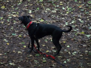 Then I decided that I should walk Bishop, especially because no one else was out. So we had a romp in the woods. Bishop got to run around (and around and around) without me dragging like a dead weight on the end of his leashes, which he always loves.