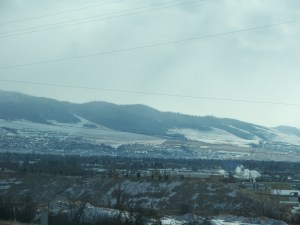 We got gas and switched drivers in Butte. Got to the hotel in Belgrade, Montana–just outside of Bozeman–a little before 6 p.m. The temperature was 3 degrees, forecasted to plunge to 17 below (with a windchill of -25). All the money in the world could not induce me to live in Montana during the winter. But at least we’re warm in our hotel room, and now everyone–even the dog and cats–is asleep but me. So I’m going to don my PJs and read in bed for a little while, I think.