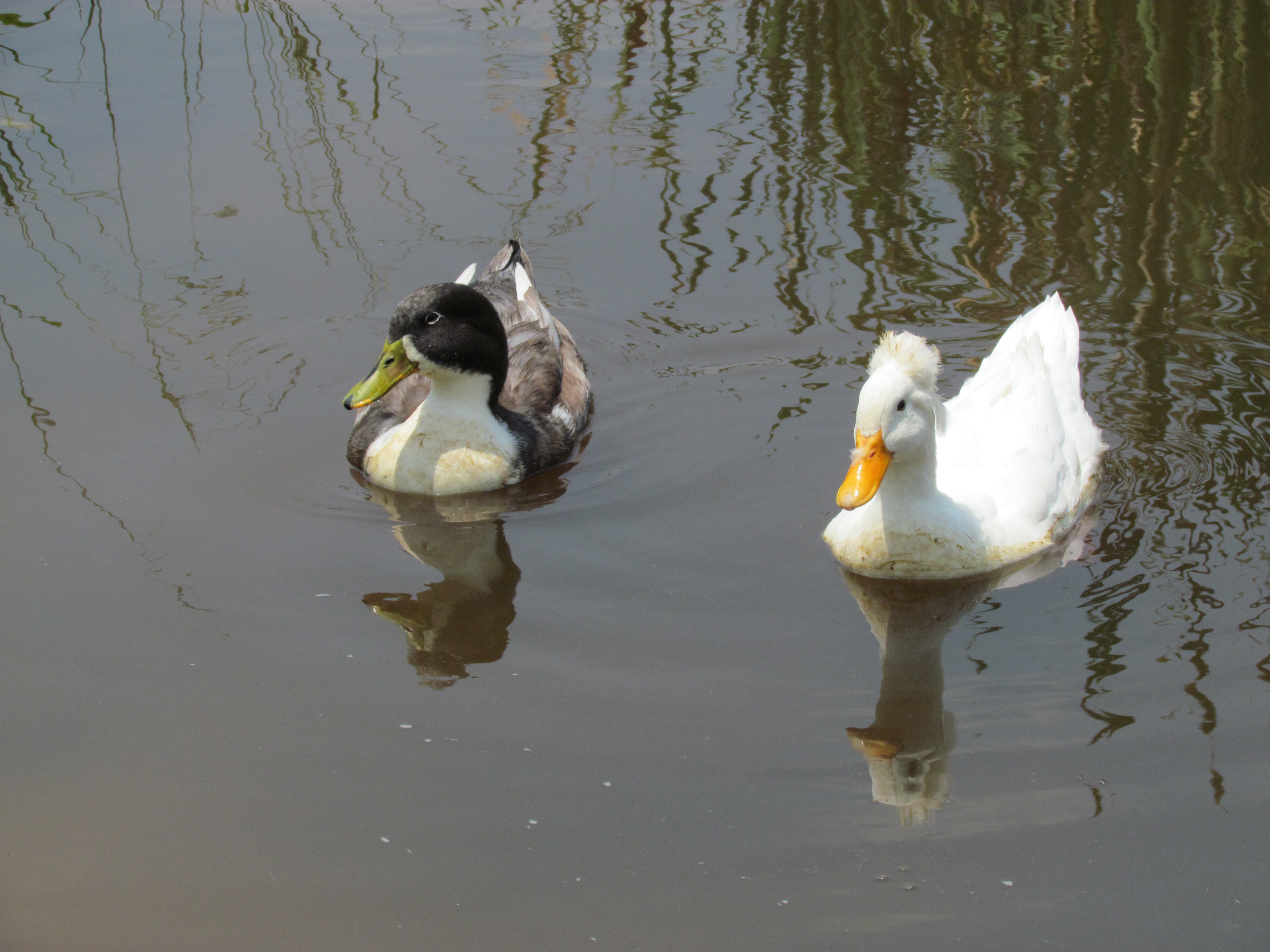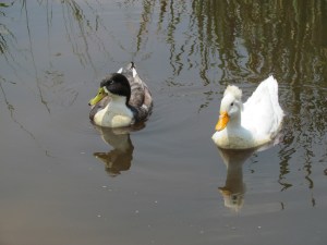 Nora has dubbed the black and white duck Penguin, and the white one Fluffy, due to the feathered crest on its head.