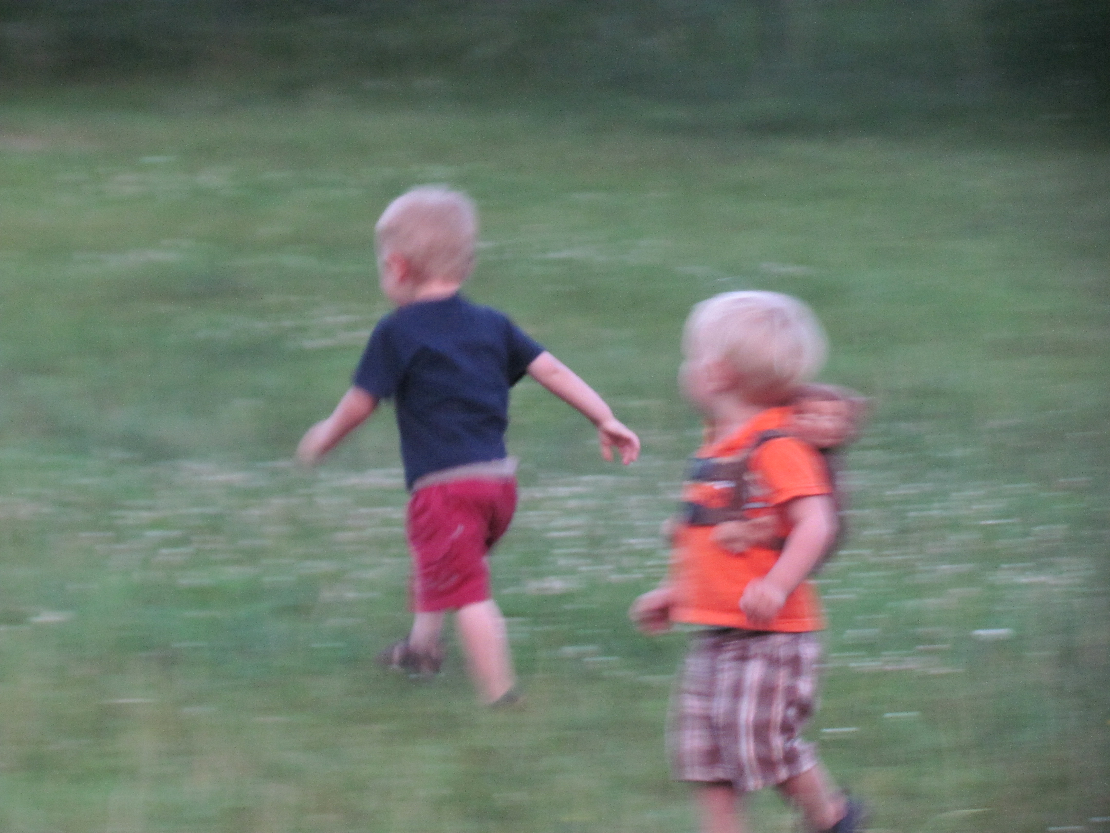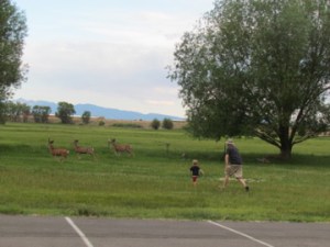 When we pulled into the lot, we saw several deer grazing on the church lawn. Zach wanted to chase them, so my brother told him to go for it and ran along behind.