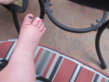 Everyone was in festive form when I arrived. My sister-in-law does very cute things with my niece’s toenails. To wit: