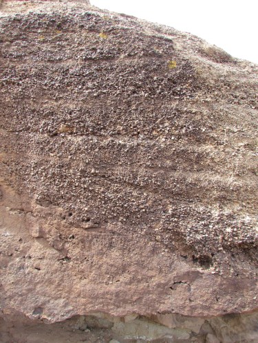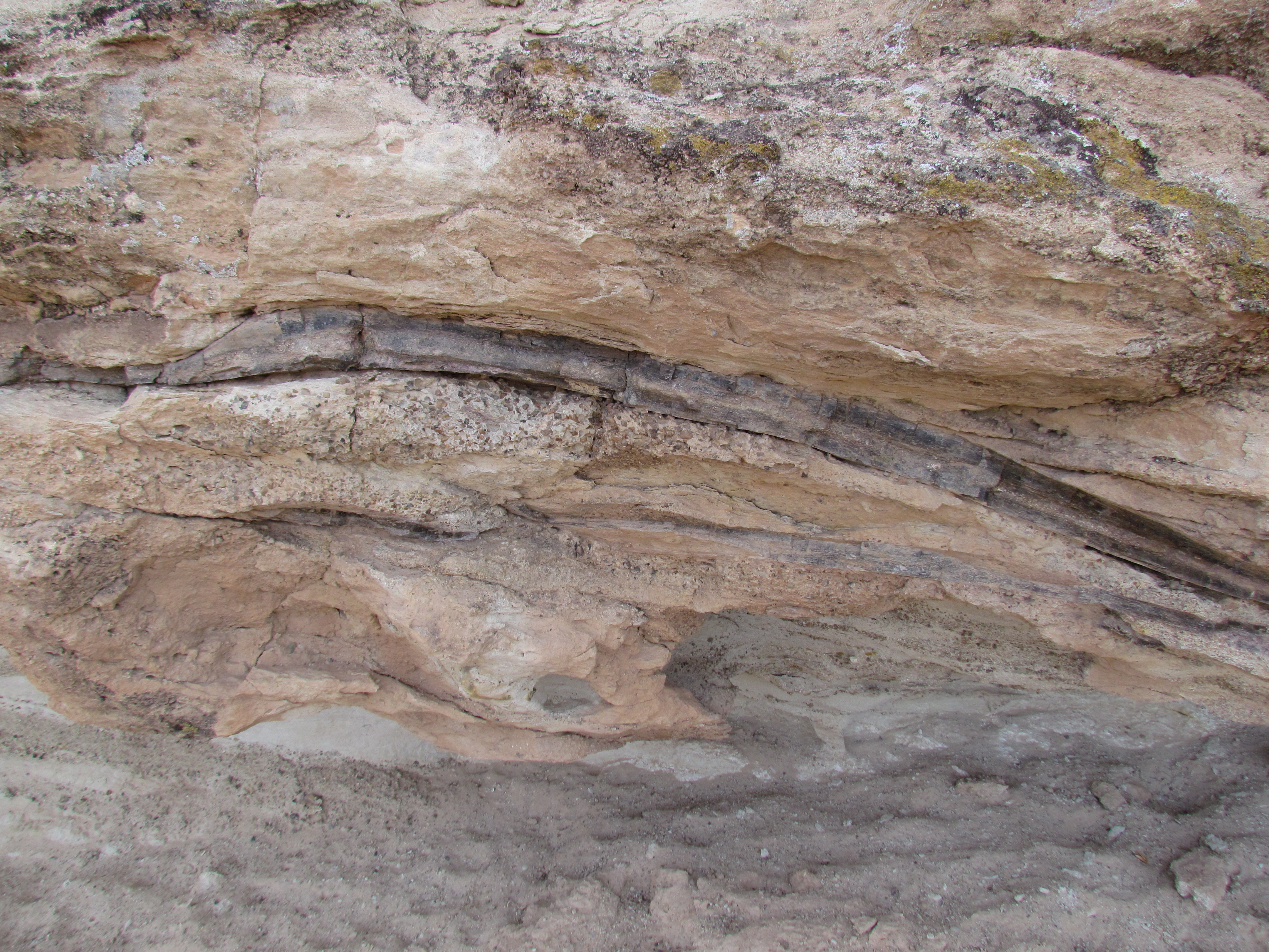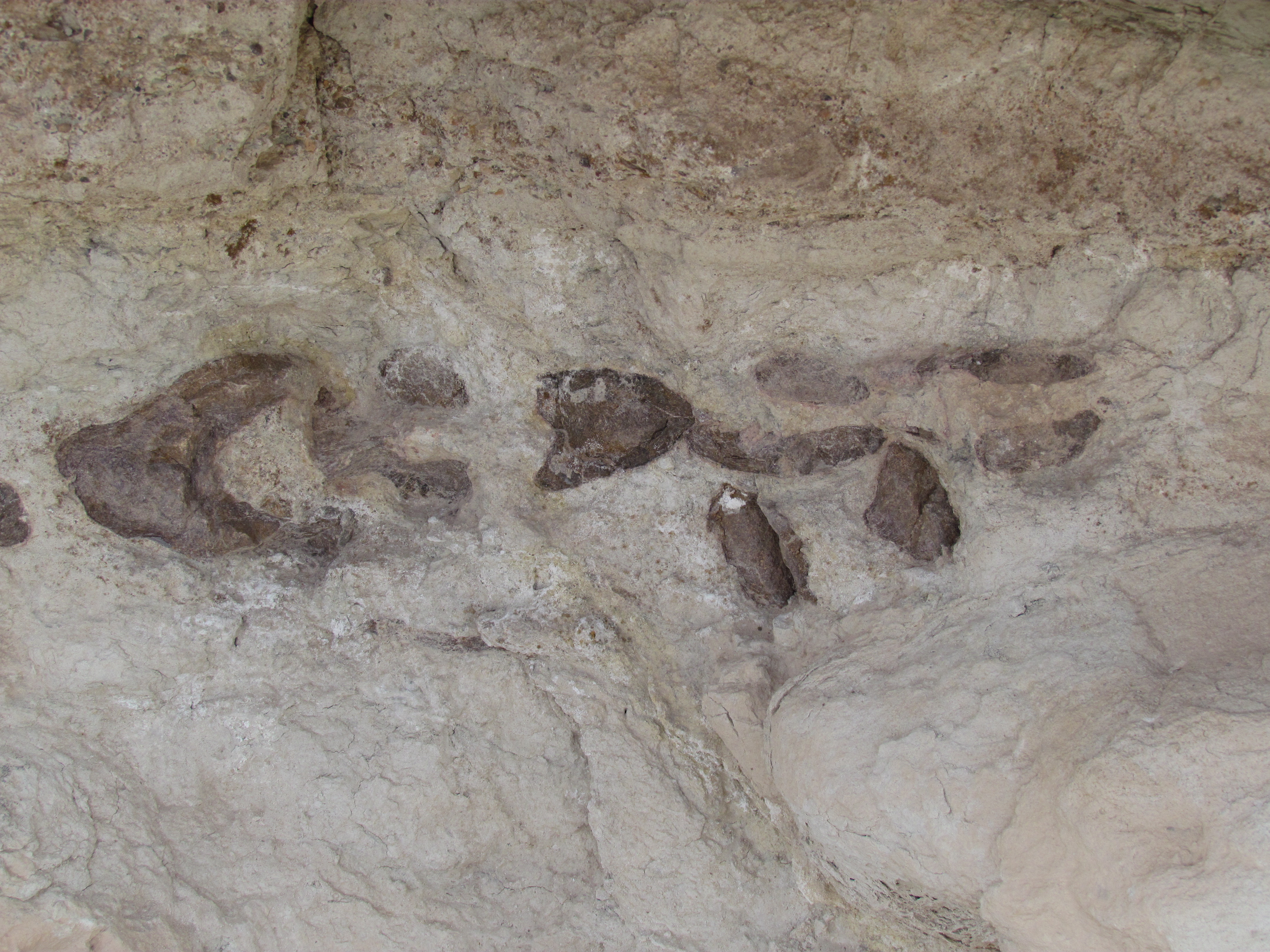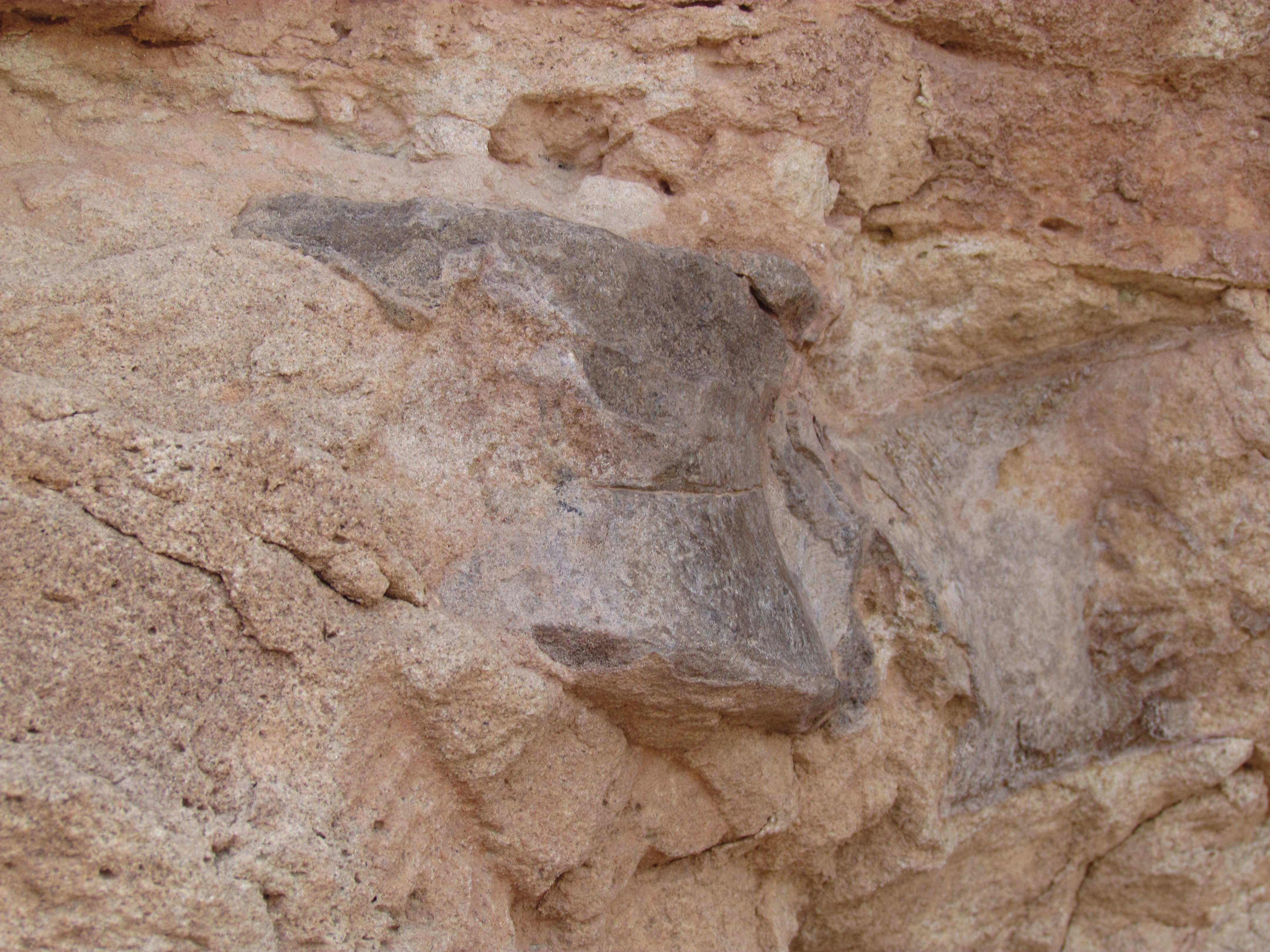 Apparently the bones were deposited here by an ancient river. The gravel riverbed is also preserved in the sandstone: