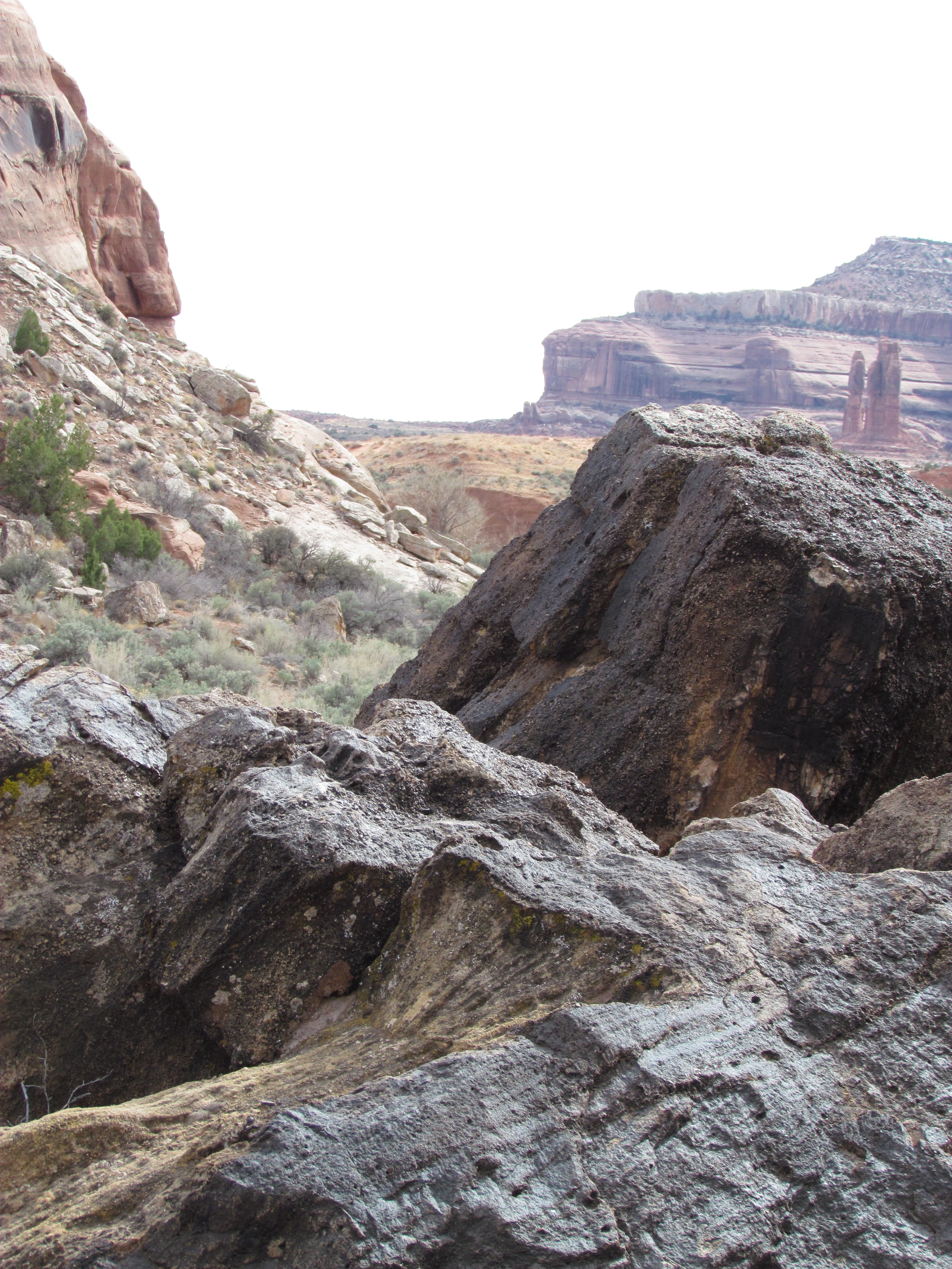 There are quite a few bones sprinkled both in the sandstone along the trail and in boulders littering the hill on the other side.