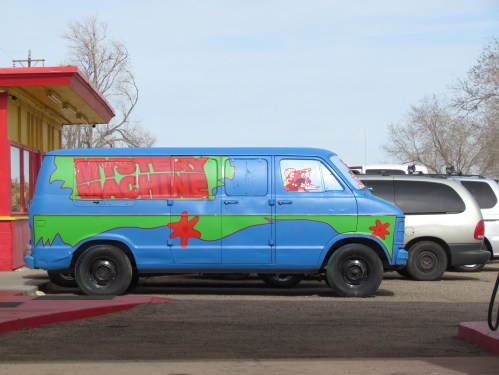 And, finally, random photo of the day: The Scooby Doo Mystery Machine, spotted outside a gas station in Crescent Junction, Utah (or maybe the gas station IS Crescent Junction, Utah; there was some question about this point):