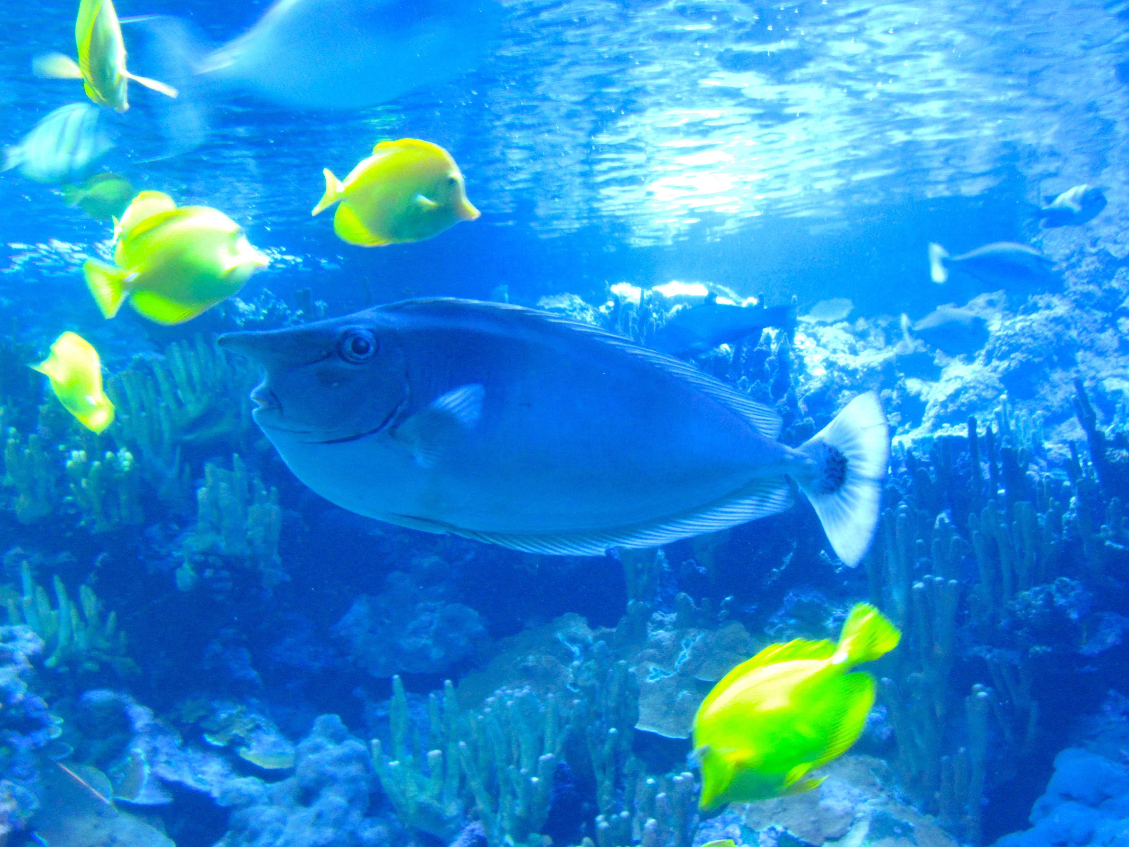 When you walk into the center, you see a shallow-water zone with various tropical fish, including these funky- (and disconcertingly human-) looking unicorn fish: