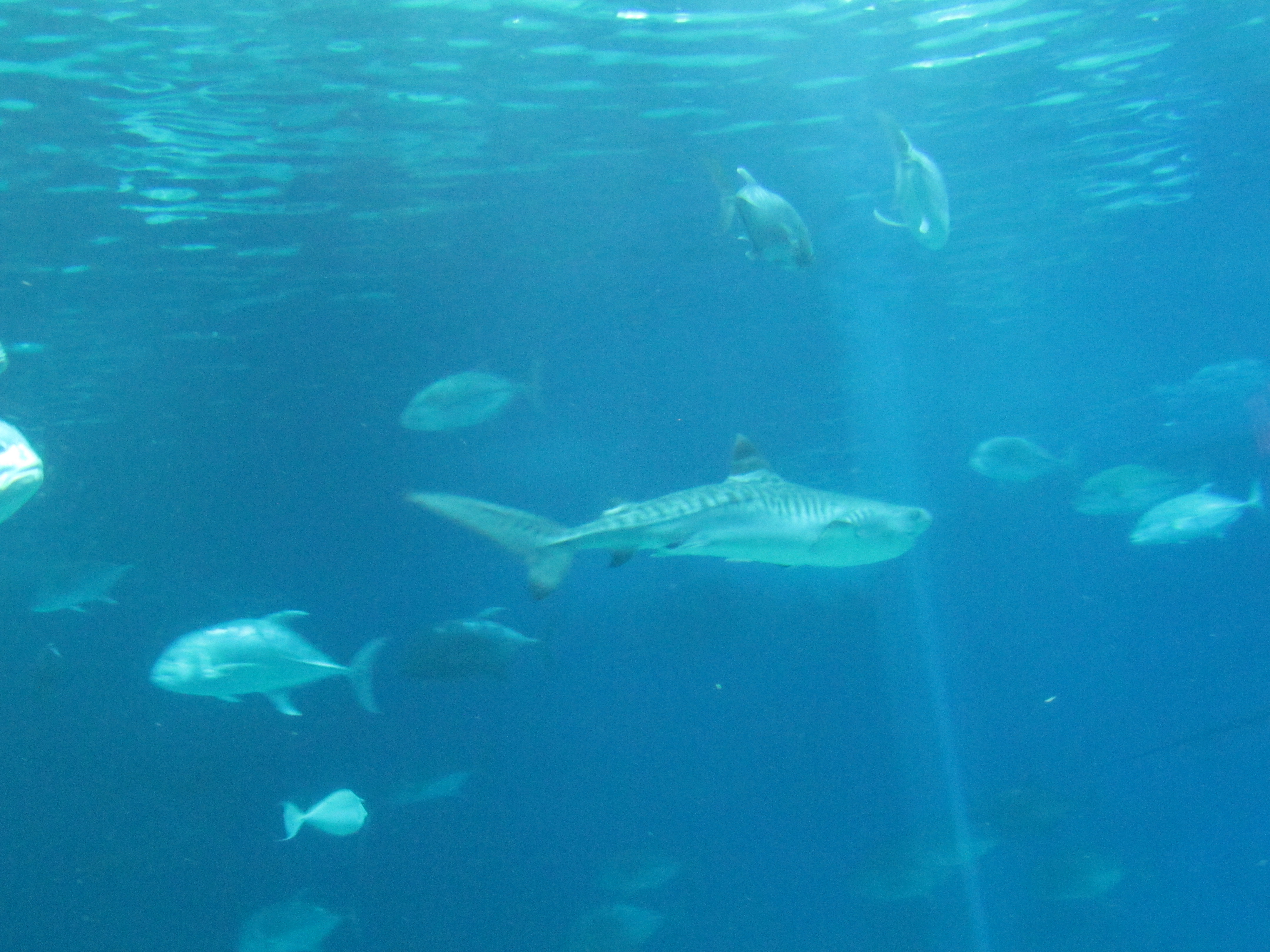 After the viewing area by the large tank, you walk into a tunnel that goes under another part of that tank, so basically, you’re surrounded by water, and sharks and rays swim right over and around you. I don’t have photos, because by this point I’d decimated the battery on my camera and borrowed my mom’s to try to get film footage (which I did, with varying degrees of success, and if I ever figure out the video editing program on my laptop, I’ll post some). But it was INTENSELY COOL.