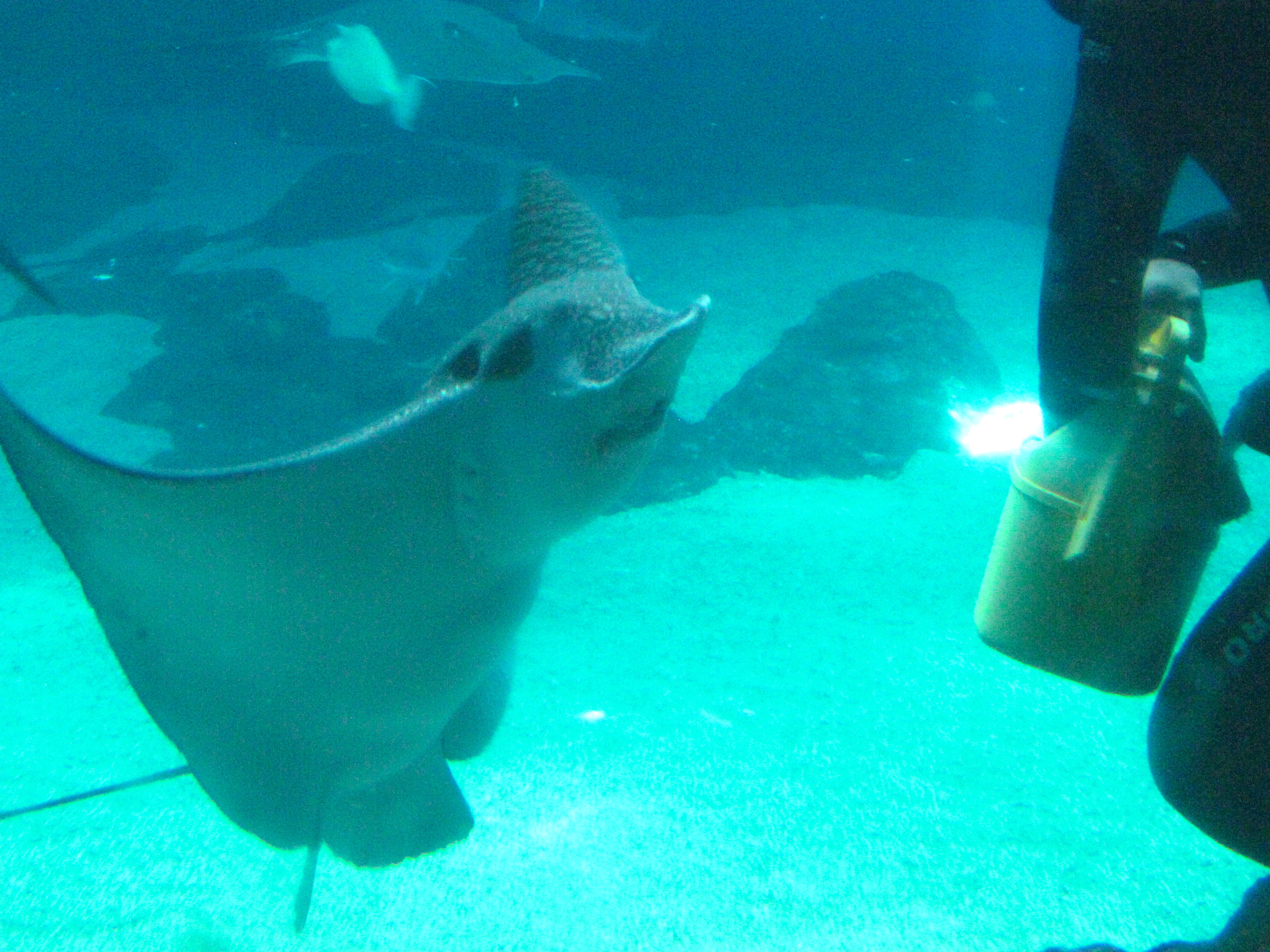Spotted eagle ray, which is seriously cool. While we were at this tank, two scuba divers fed the various inhabitants. The spotted eagle ray seems as well-trained as a dog, even though I believe the person narrating said it’s actually not trained at all. It was cute and funny and, as the guide said, “always hungry.”