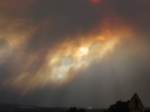 Everyone is being told to remain inside because the air quality is so bad. When I step outside, my eyes and sinuses burn. Traffic has been awful all afternoon and evening, both because of the evacuations–more than 32,000 people–and because curiosity seekers have been stopping their cars in the middle of the road to look at the fire.