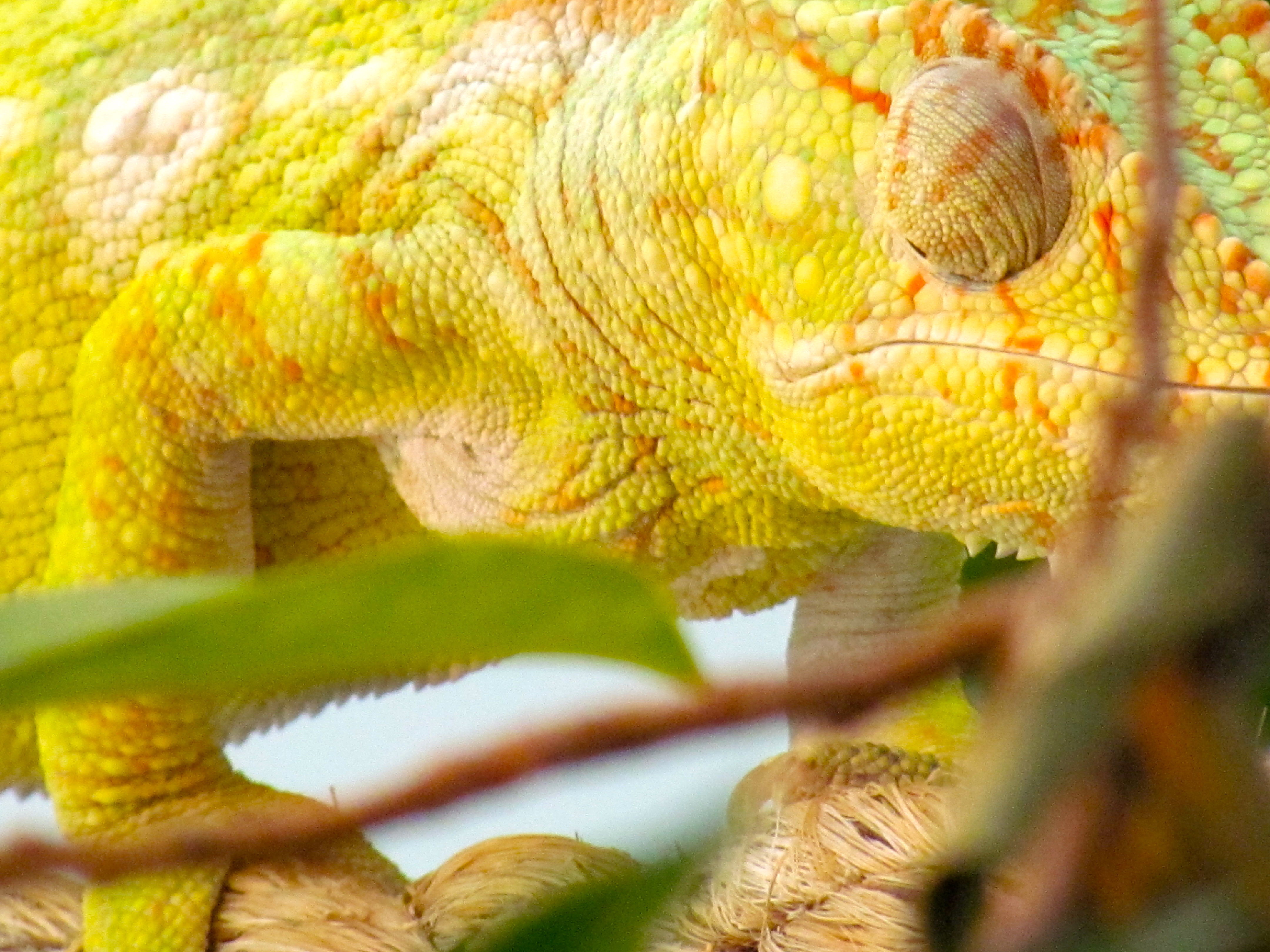 Closeups of Oustalet’s chameleon, above and below.