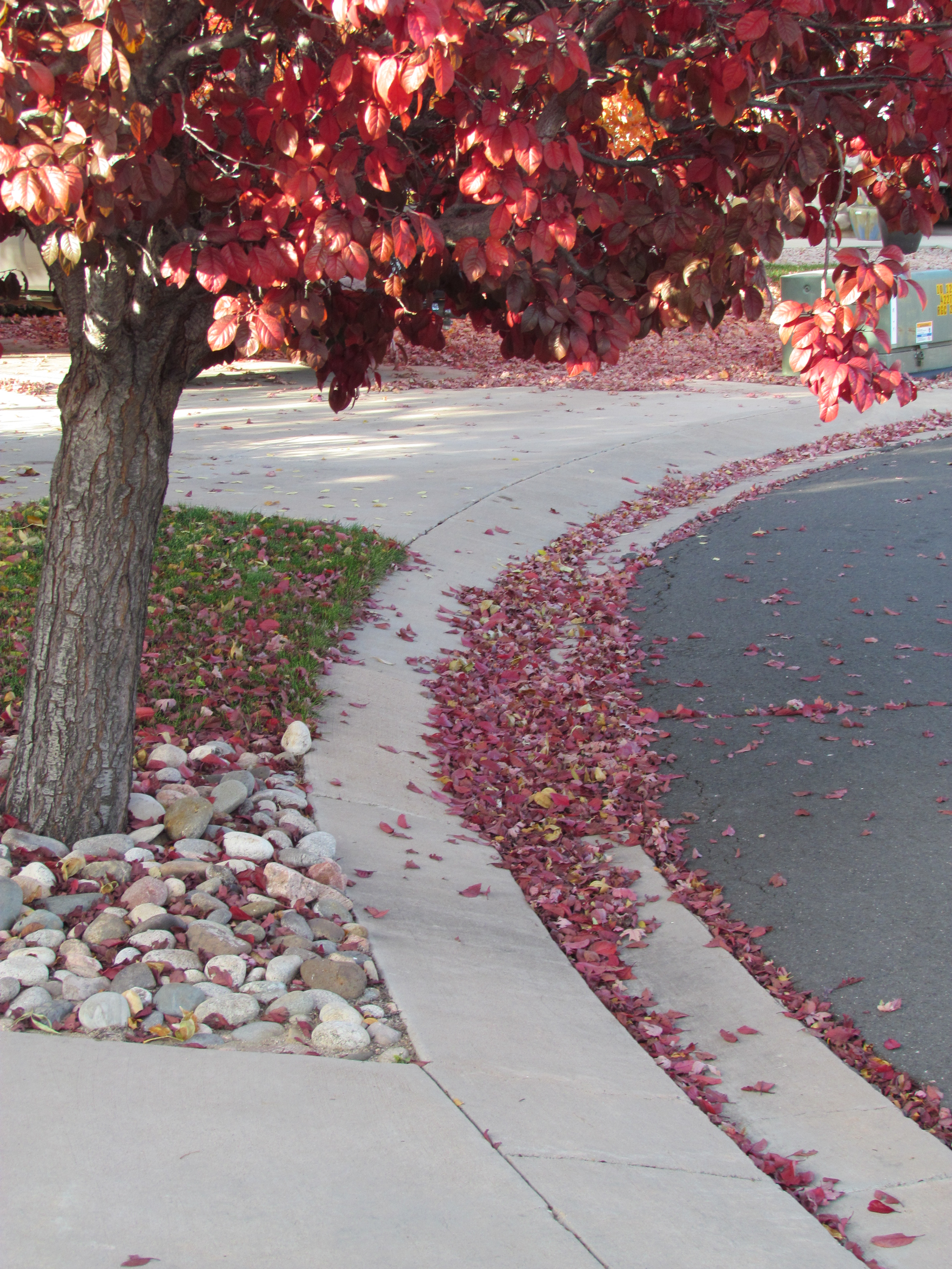 On the way home, I noticed what a beautiful afternoon it was, how incredible the sunlight looked on and through the fall leaves. I thought about taking a drive in the mountains but decided instead to walk around the neighborhood with my camera. (All the photos in this entry are from that ramble.) I shot leaves and Halloween decor and met a woman a few streets over who has four shar-peis, two of them adopted from National Mill Dog Rescue. We chatted for awhile, about her dogs and how much we love October and how we miss Georgia (turns out she spent almost a year in Atlanta). Then I finished my walk just in time to watch the Broncos win their game. Yes, even I am susceptible to football fever.